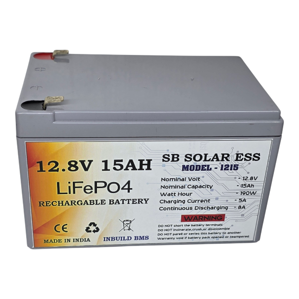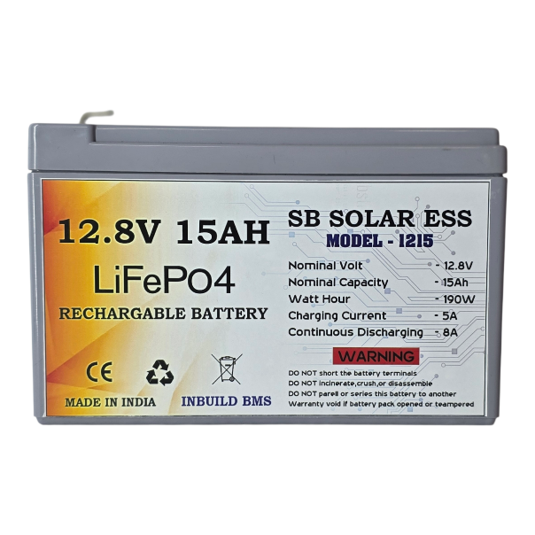 SB solar ESS lithium battery pack made by high quality A grade 3c cells of lipo4 we assembled and supplying for solar dc home projects,street lights, toys and many more... This battery pack mainly recommended for solar dc home projects only (Avoid use in AC inverter)because of avoiding battery damage while using with AC. Our battery pack has inbuilt BMS 10A to protect battery from over charging, discharging and ensure long life. Battery has 3year warranty which is serviced by us and again delivered to respective customers.Warranty will not cover which means physical damage or water damage. Use specified solar charge controller or adoptor to charge the battery. Battery Recommended Charging Current - 4A Maximum Discharge Current - 10A *** DONOT PARALLEL OR SERIES BATTERY *** ** For any assistance please contact helpline number +91 8525095422 **