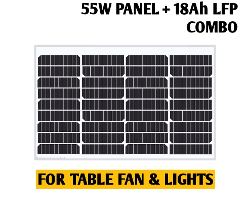 SB UTL DC Table Fan Combo Pack 55W Mono Solar Panel With 18Ah LFP Battery (Materials Alone)
