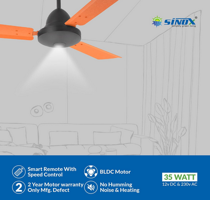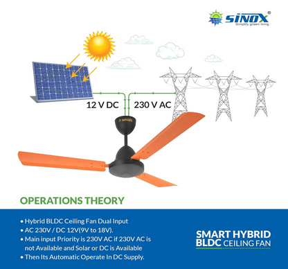 High speed hybrid ceiling fan with remote of speed regulation.it directly run on 12v battery or 60w to 100w solar panel(day only) or 220v ac. This highly strong aluminum wings provide long and high air circulation and it doesnot need any speed regulator for speed control . It having descend remote control to regulate speed control of the fan from speed one to five. NOTES:- Donot use any regulator Have to wiring separately for ac&dc *****2year warranty***** For more details please call or whats app to our customer care number +91 8525095422