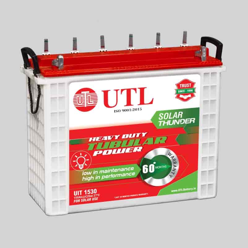 150Ah utl solar battery is ideal for retail shop, office and house. It offers high voltage and power which can withstand all weather conditions. UTL uses cutting edge technology to manufacture the battery. Unique Features of 150Ah Solar Inverter Battery * Unique tubular gauntlet /Nat positive plates design * Superior active material & special grid alloy * Float vent plug for electrolyte level indicator * Covered with HDPE material caps * C20 rated solar battery for better performance * Extremely high life cycle 1500 @ 80% DOD * Comes with non-leaking vent plugs * High-pressure die casting for a unique experience * Very low self-discharge rate i.e. 2mV/per day Benefits of UTL 150AH Solar Inverter Battery * Reliable and safe solar battery for all electrical needs * Easy to transport, install, and clean * Cheap and maintenance-free solar battery * Environment-friendly solar solution for backups * Equally suitable for off-grid and hybrid solar system * Quick rechargeable even after deep discharge * Deep satisfaction with only a one-time investment * 30 Months Pro-Rata Warranty. Dimension - 503*190*410 mm Filled Weight - 54kg For more information please call or whatts app to our customer care number +91 8525095422